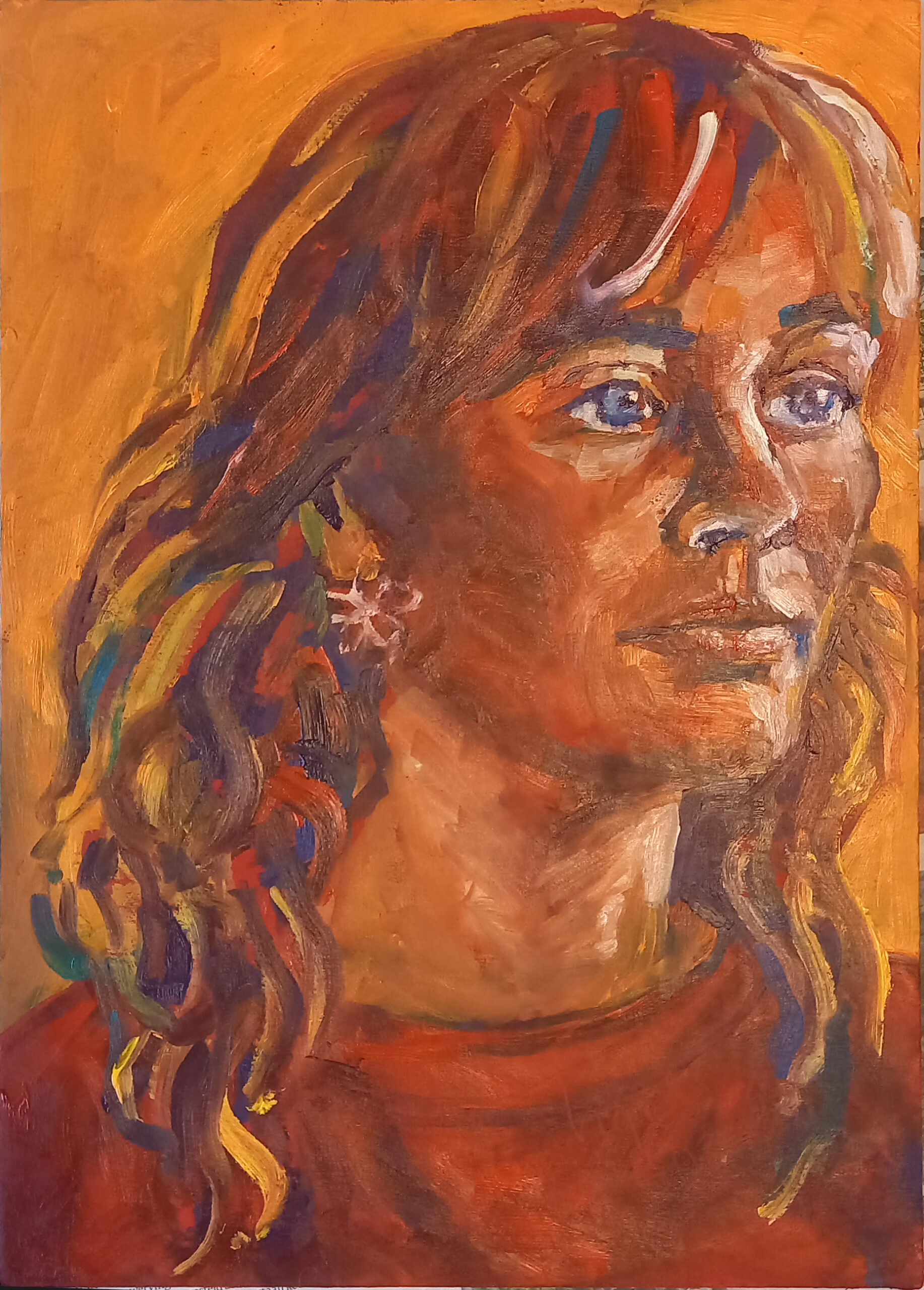 Portret in een meer klassieke stijl. Olieverf op karton 50 x 60 cm.